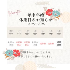 あわせて年末年始のお知らせになります